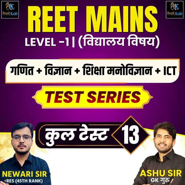 REET Mains Level- 02 (गणित & विज्ञान+शिक्षा मनोविज्ञान+ICT) Test Series Topic Wise Test Series Total Test 13
