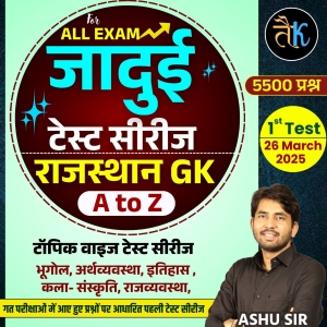राजस्थान GK जादुई टेस्ट सीरीज, टॉपिक वाइज टेस्ट सीरीज (व्याख्या सहित) भूगोल, अर्थव्यवस्था, इतिहास, कला-संस्कृति, राजव्यवस्था गत परीक्षाओं में आए हुए प्रश्नों पर आधारित टेस्ट सीरीज